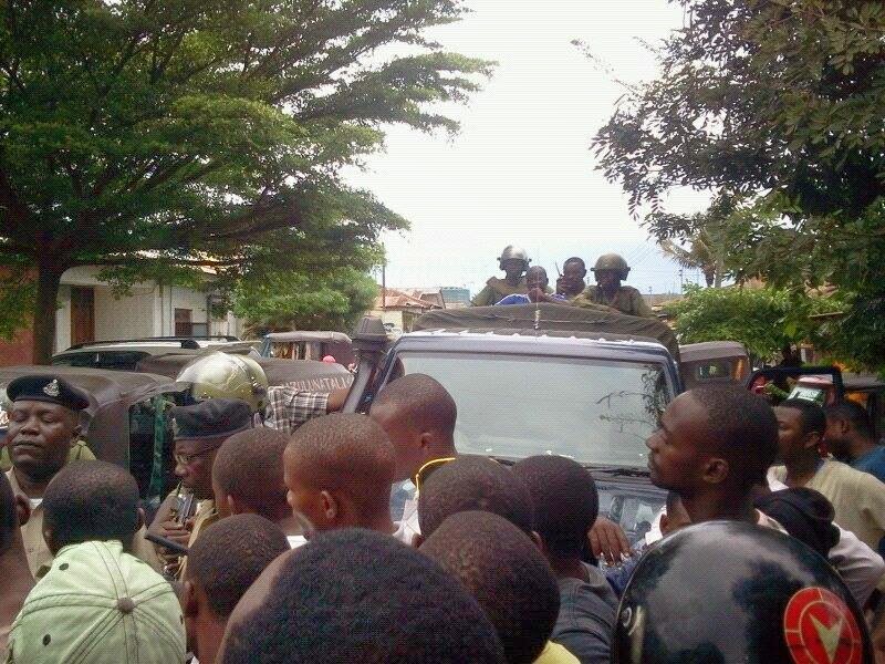 Polisi wakiwa wamefika eneo la tukio mda huu ili kuweza kuweka hali ya usalama na kuzuia vurugu.