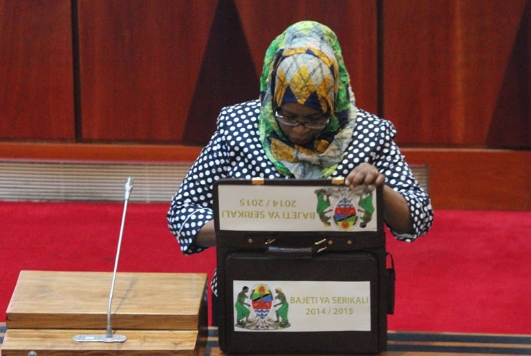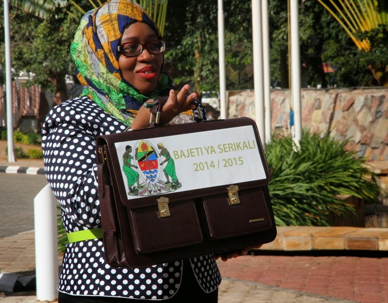 Waziri wa Fedha Saada Mkuya Salum akiwasili Bungeni alipokuwa anaenda kuwasilisha hotuba ya mapendekezo ya Bajeti ya Serikali kuhusu makadirio ya mapato na matumizi kwa mwaka wa fedha 2014/2015 leo mjini Dodoma.
