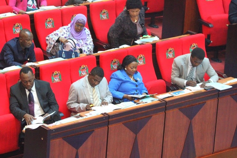 Baadhi ya Wabunge wakifuatilia hotuba ya Waziri wa Fedha Saada Mkuya Salum alipokuwa anawasilisha mapendekezo ya Bajeti ya Serikali kuhusu makadirio ya mapato na matumizi kwa mwaka wa fedha 2014/2015 leo Bungeni mjini Dodoma.